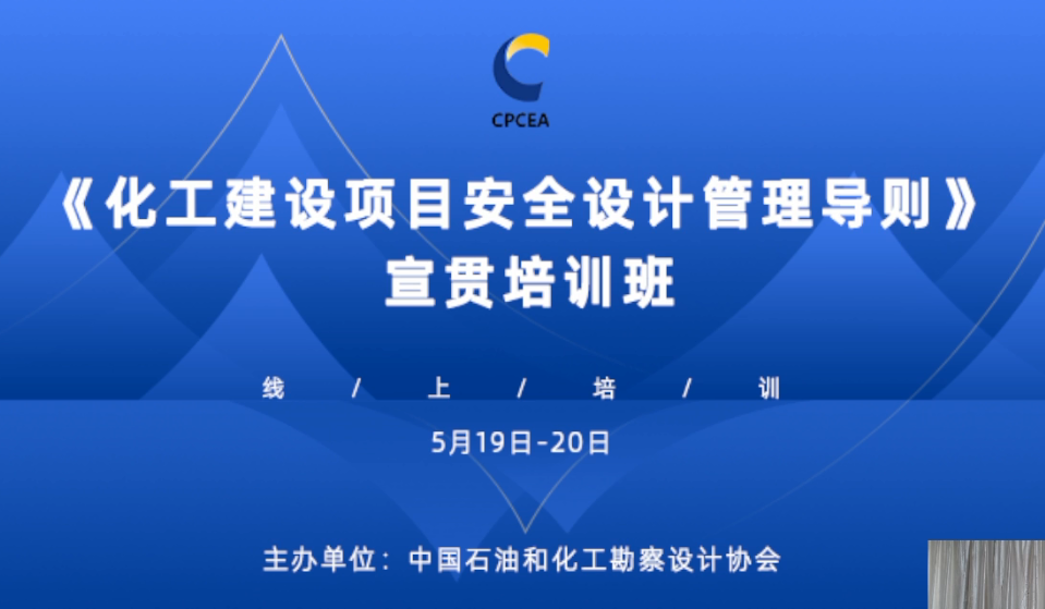 很高興參加由中國石油和化工勘察設計協會組織的《化工建設項目安全設計管理導則》宣貫培訓班,來自于有關石油和化工工程公司、設計單位、建設單位的安全設計管理人員和專業設計人員通過網上授課、直播方式參加培訓,首先代表化學品分標委對大家的積極參與表示感謝。