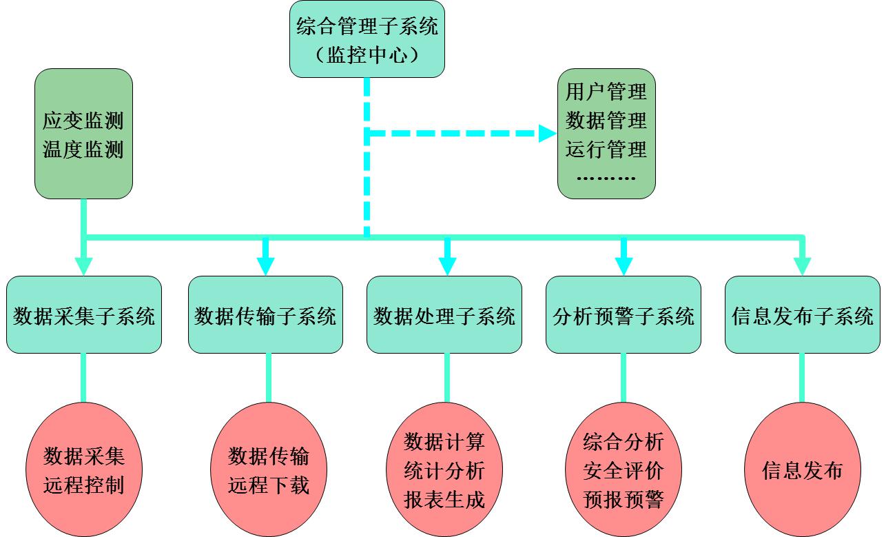 管道凍土災害監測預警信息系統是基于BS架構的管理平臺,系統由數據采集子系統、數據傳輸子系統、數據處理子系統、分析預警子系統、綜合管理子系統、信息發布子系統等七個功能模塊組成,實現數據釆集與預處理、數據的分析計算、風險評價與預警功能。