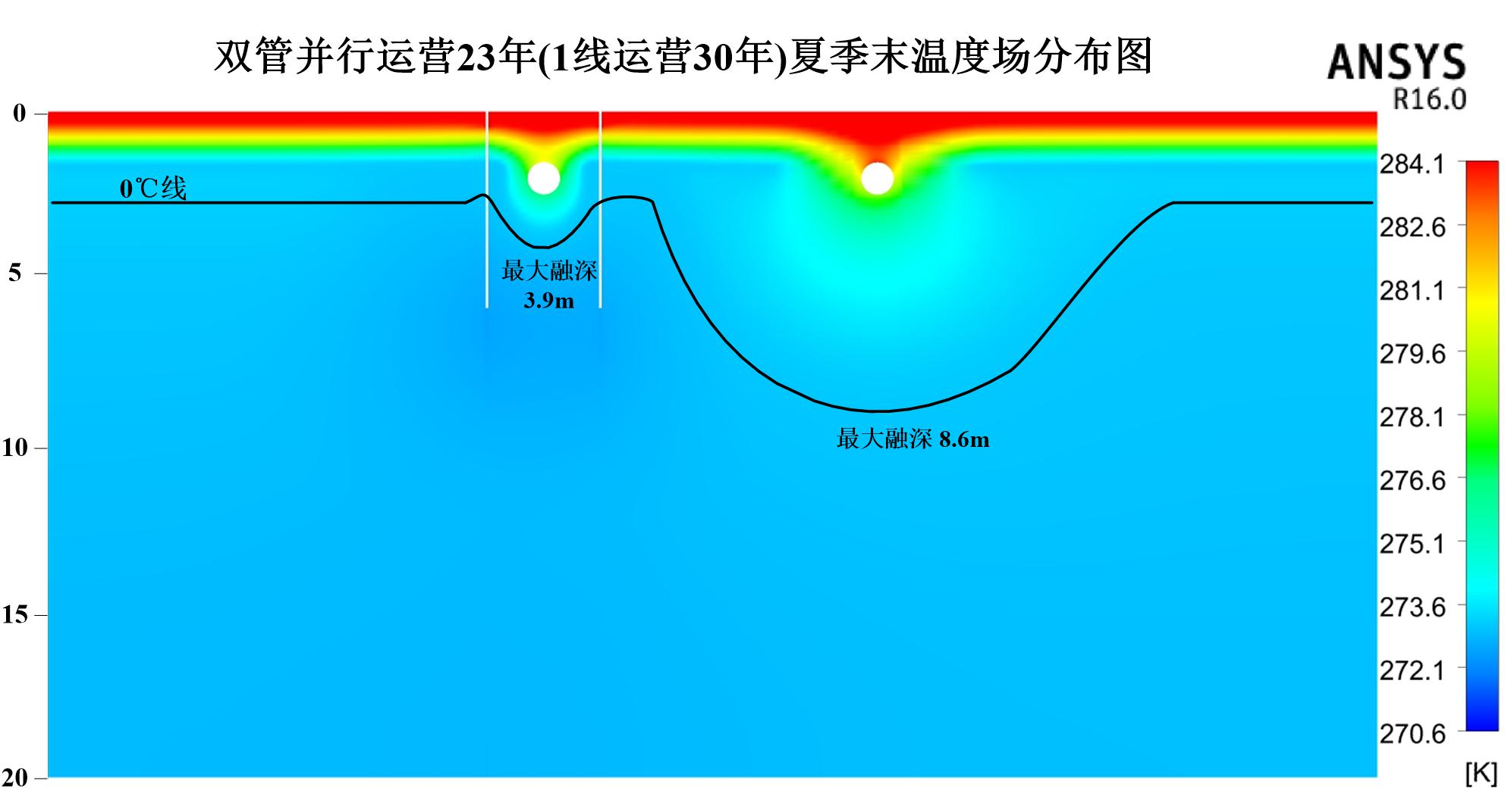 圖2漠大線線運營30年熱棒所在土層截面溫度場