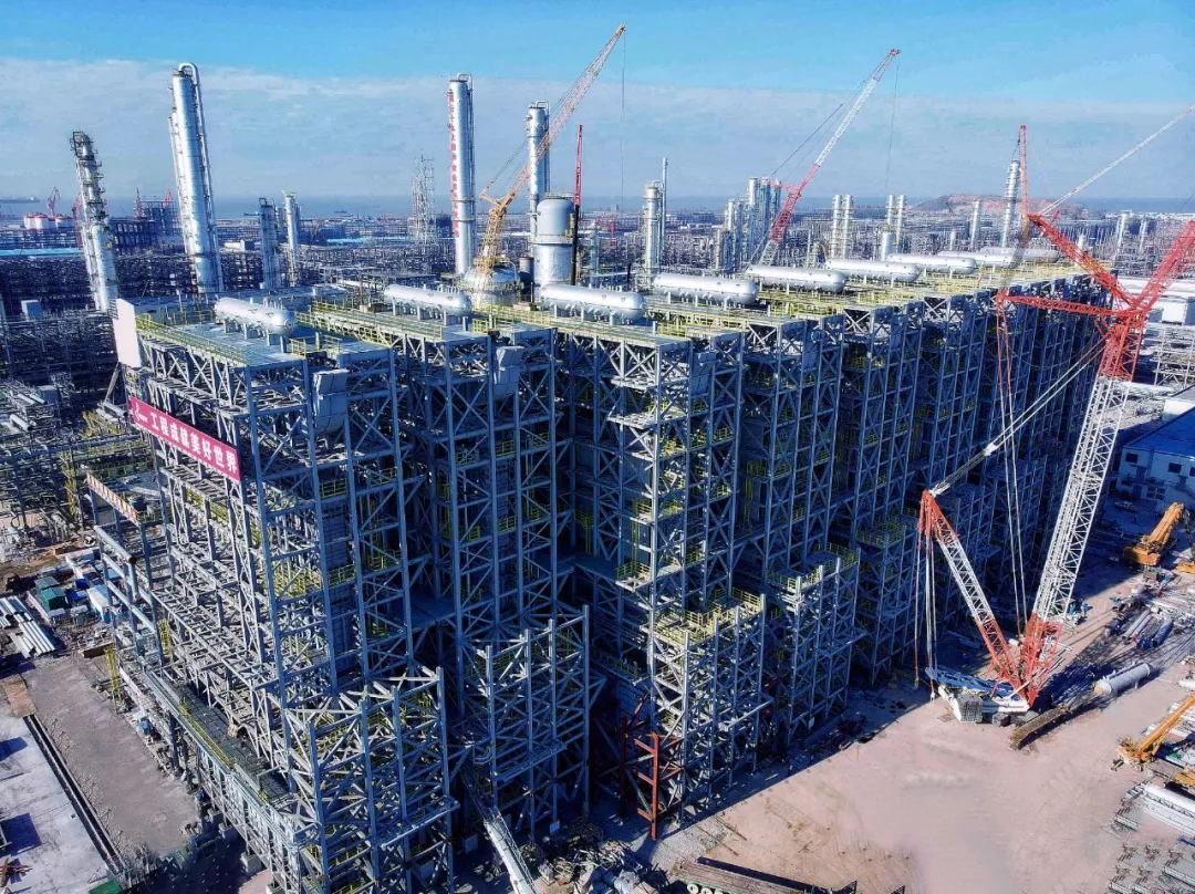 該乙烯裝置采用9臺乙烯裂解爐,單臺乙烯產能為20萬噸/年,開創了世界范圍內最大單臺模塊化的制造先例,其高度約53米,總重量約3689噸,由大型駁船運載經50海里按計劃抵達項目基地。