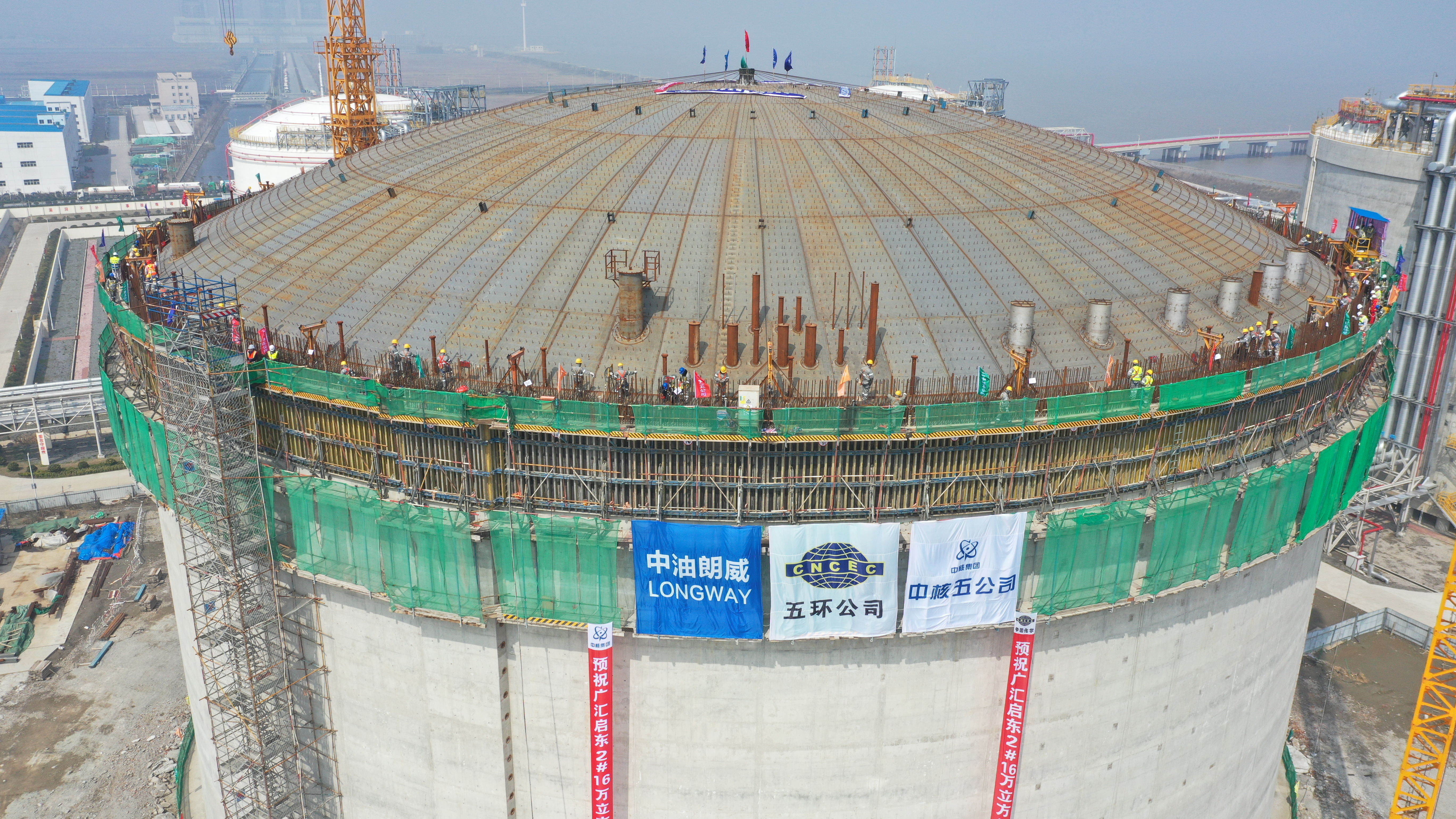 3月4日,中國(guó)化學(xué)所屬中國(guó)五環(huán)工程有限公司自主設(shè)計(jì)的廣匯啟東2#16萬(wàn)立方米LNG儲(chǔ)罐穹頂結(jié)構(gòu)氣壓升頂圓滿成功,這也標(biāo)志著項(xiàng)目的建設(shè)已從外罐作業(yè)全面轉(zhuǎn)入內(nèi)罐安裝。