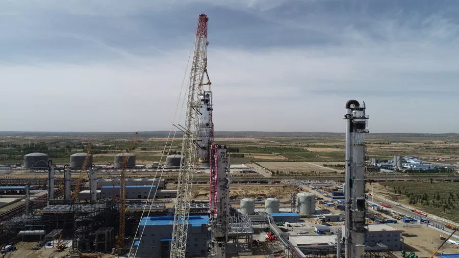 華陸科技設計的榮信項目甲醇洗滌塔吊裝成功 |