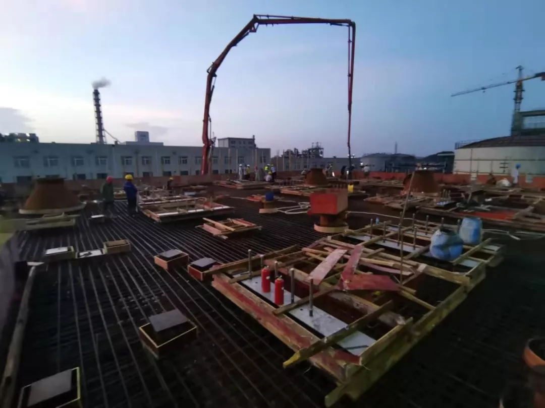 為確保反應槽施工質量符合設計要求,項目組在每次混凝土澆筑前均組織召開業主、監理、分包商及作業班組全員參與的安全、技術交底會,逐項確認安全注意事項和施工工藝流程;混凝土澆筑期間,項目組土建、設備、HSE等專業人員全過程旁站監督,確保每一項施工步驟均符合設計和HSE要求;項目組充分協調、調動全體參建方利用各方資源,保證了施工質量與安全,向業主提交了一份滿意的答卷。
