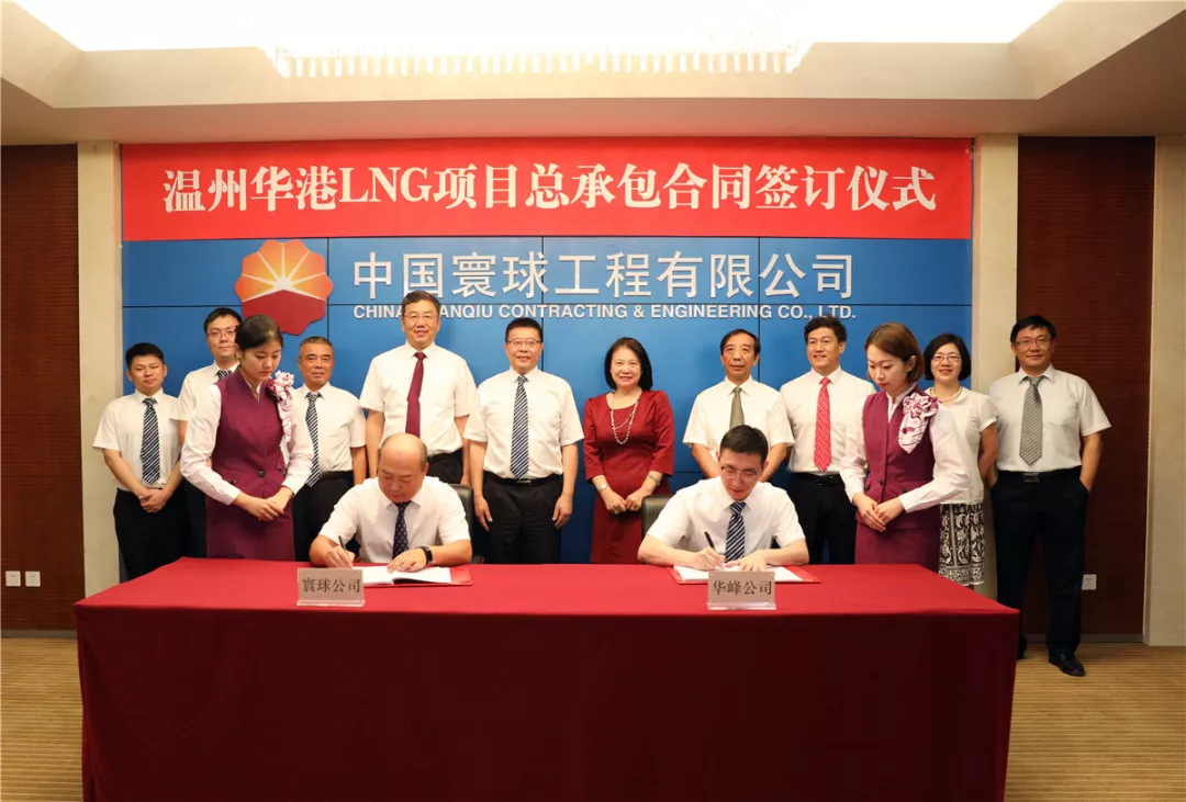 9月8日,北京寰球公司總承包的溫州華港液化天然氣儲運調峰中心(罐區)項目EPC工程總承包簽約儀式在寰球總部舉行。華峰集團有限公司總裁林建一,寰球公司執行董事、黨委書記王新革出席了簽約儀式。