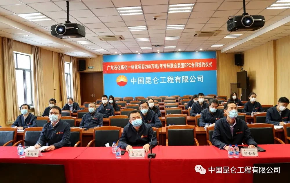 4月16日上午,廣東石化煉化一體化項目260萬噸/年芳烴聯(lián)合裝置EPC總承包合同簽訂儀式在廣東石化公司舉行,中國昆侖工程有限公司設(shè)分會場,通過視頻方式同步參會。