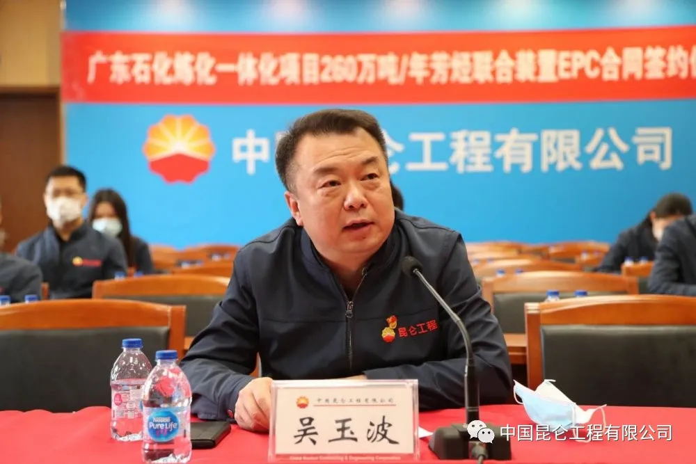 公司總經(jīng)理助理、廣東石化項目部總經(jīng)理穆萬春與廣東石化公司副總經(jīng)理張維波代表雙方簽約。公司總經(jīng)理、黨委副書記吳玉波與中國石油廣東石化公司黨委書記、總經(jīng)理陳俊豪見證簽約并發(fā)表講話。吳玉波表示,對昆侖工程而言,廣東石化的建設(shè)任務(wù),既是一次助力公司高質(zhì)量發(fā)展的歷史機遇,也是一次對公司項目執(zhí)行能力和管理水平的重要考驗。昆侖工程將高度重視,集全公司之力,精心籌劃,周密組織,嚴(yán)格管理,把住安全關(guān)、質(zhì)量關(guān)、技術(shù)關(guān)、進度關(guān)、費用關(guān),按廣東石化的部署要求高質(zhì)量完成項目建設(shè)任務(wù)。