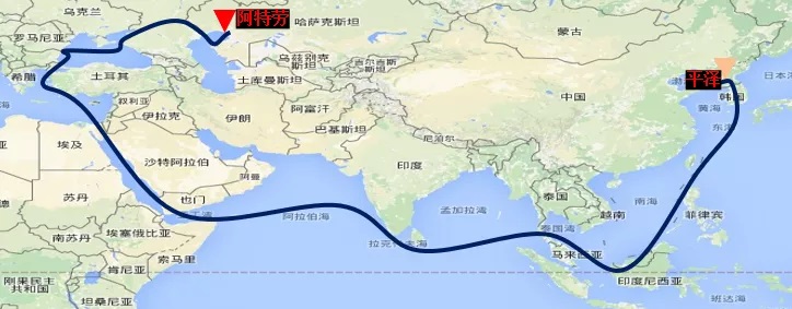 PDH裝置CATOFIN反應器共有8臺,單件設備尺寸為18500*10000*9550mm,重量約152噸。該批設備于今年2月25日自韓國平澤裝船發運,經臺灣海峽和馬六甲海峽進入印度洋,途經紅海、地中海、黑海、里海,最終由烏拉爾河到達目的港——阿特勞港。