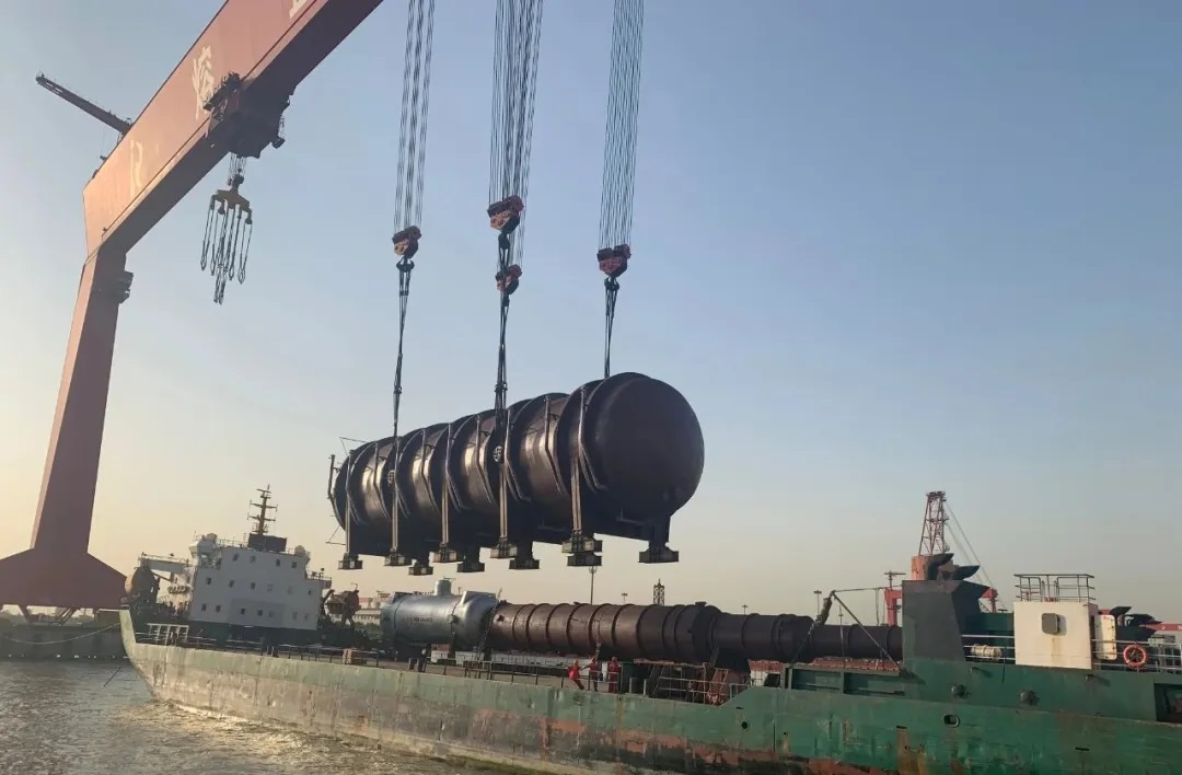 5月14日,迎著初升的太陽,一艘名為“航海之源”的駁船,從江蘇南通碼頭滿載駛出,船上裝載的是中國化學工程天辰公司渤化“兩化”搬遷項目中兩臺最大的設備——氧化反應器。