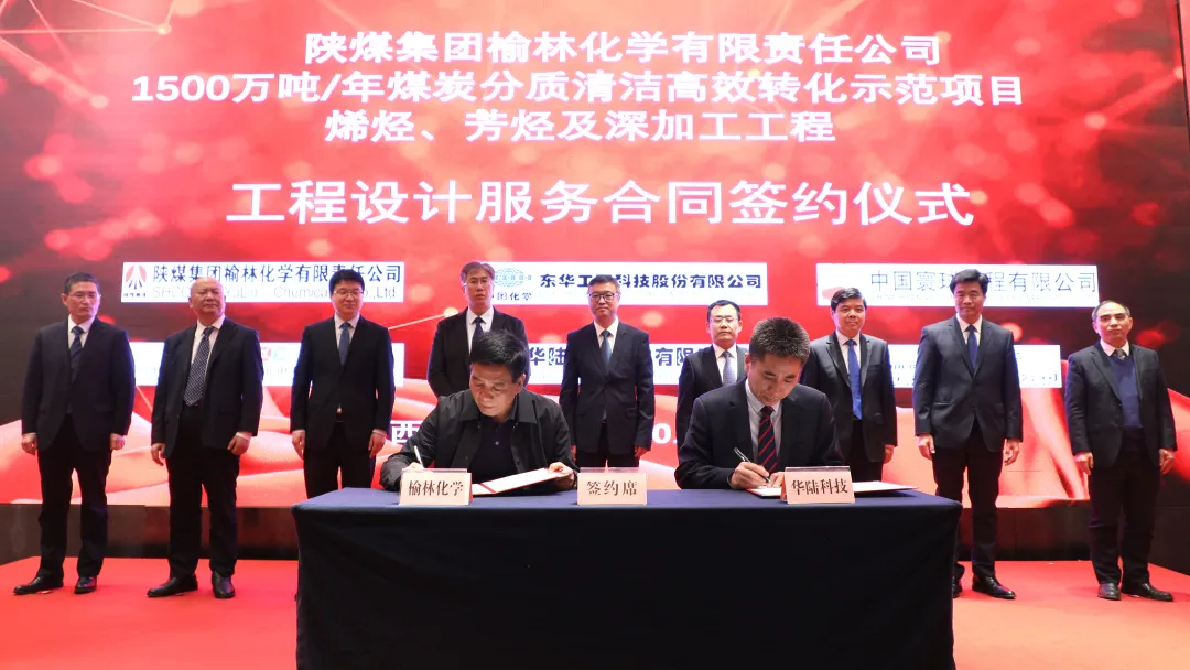 陜煤集團總經理助理、陜煤榆林化學執行董事、黨委副書記宋世杰;陜煤榆林化學黨委書記、總經理王會民,總工程師劉萬勝;華陸工程科技有限責任公司黨委書記、董事長王海,總經理鄭開學等參加簽約儀式。