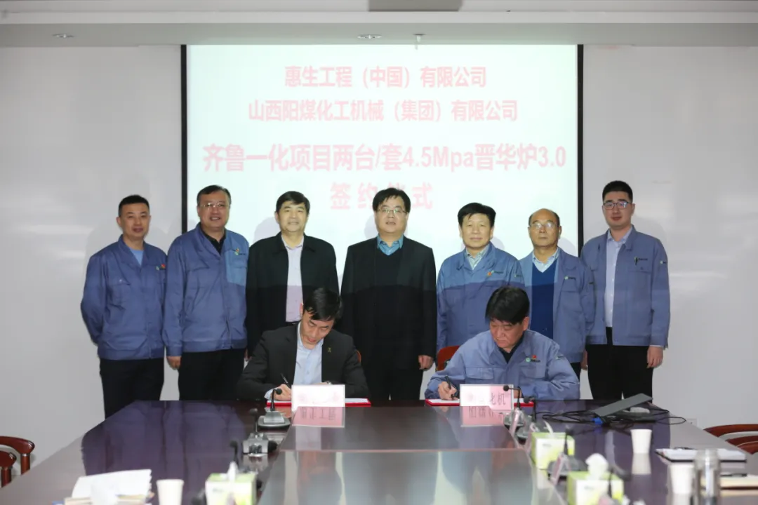 3月12日,惠生工程(中國)有限公司與山西陽煤化工機械(集團)有限公司就陽煤集團淄博齊魯第一化肥有限公司45000Nm3/h合成氣裝置技改項目兩臺/套4.5Mpa晉華爐3.0達成正式合作,簽約儀式在陽煤化機舉行。