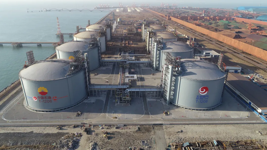 8月26日,中國寰球工程有限公司北京公司唐山LNG項目現場,蔚藍的天空下8臺LNG儲罐矗立在場區,唐山LNG接收站應急調峰保障工程竣工投產見證會正式召開。