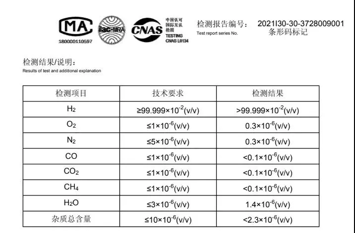 經第三方上海市計量測試技術研究院的專業檢測,高純氫氣產品在高于合同要求收率的前提下,氫含量大于99.999%,高于99.97%的燃料電池車用氫氣國家標準。裝置目前穩定運行中,高純氫產品已銷售至中石油華北地區加氫站。