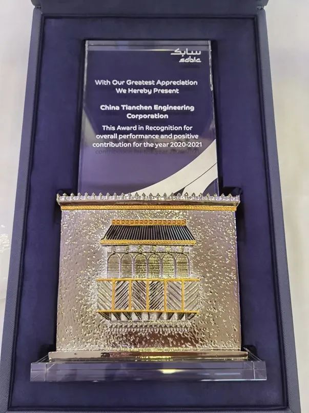 鑒于天辰公司近兩年的突出業(yè)績,沙比克授予天辰公司2020-2021年“承包商貢獻(xiàn)獎”,也是唯一獲此殊榮的中國公司。這是天辰公司沙特項目部全體成員上下同心、勇于拼搏所取得的成果,體現(xiàn)了天辰公司重諾守信、攻堅克難的工作作風(fēng)。