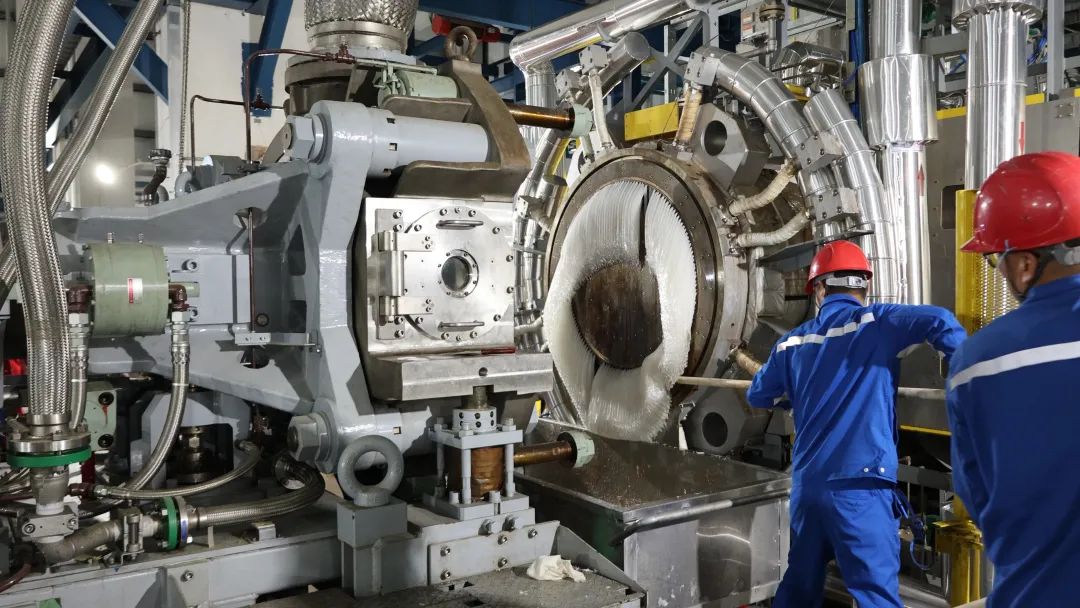 調試當日,高密度聚乙烯裝置擠壓造粒機組經過啟動主電機、拉料、沖模、合模、啟動切粒機切粒等步驟后,順利生產出首批合格的高密度聚乙烯產品顆粒。至此,廣東石化聚烯烴三套生產裝置實物料試車工作全部完成。