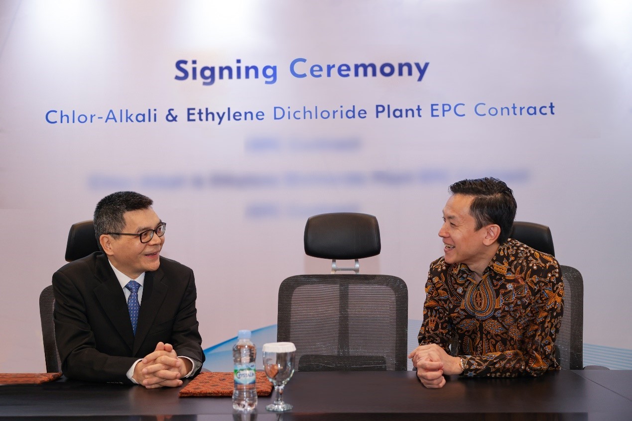 3月20日,成達(dá)公司以EPC總承包模式承接的印尼CAA-1年產(chǎn)42萬噸燒堿/50萬噸二氯乙烷(EDC)項(xiàng)目在印尼巴利多集團(tuán)總部成功舉行簽約儀式。巴利多集團(tuán)總經(jīng)理阿古斯,錢德拉公司總經(jīng)理埃爾文,成達(dá)公司黨委書記、董事長劉一橫出席簽約儀式。
