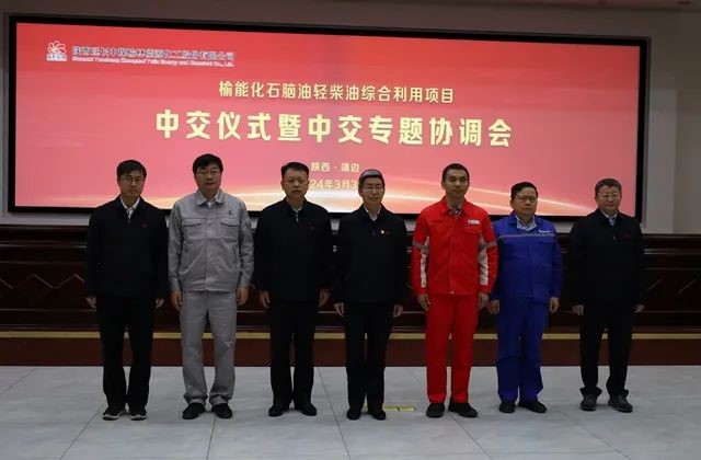 榆能化公司總經理王晶,昆侖工程、陜西化建、中外天利等各參建單位負責人,公司現場項目部主要成員一同參加了中交儀式。