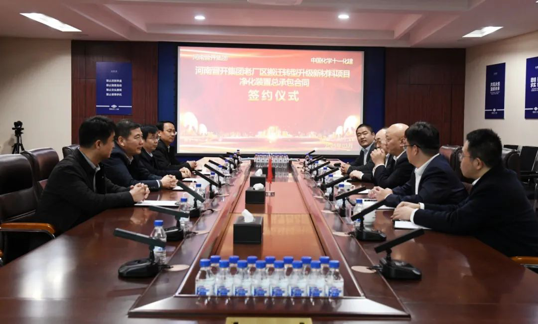 3月7日,中國化學工程十一建設有限公司與河南晉開化工投資控股集團有限責任公司在開封總部舉行河南晉開集團老廠區搬遷轉型升級新材料項目凈化裝置總承包合同簽約儀式。公司黨委書記、董事長李光明、晉開集團董事長徐俊紅出席儀式,公司副總經理袁忠學主持儀式。
