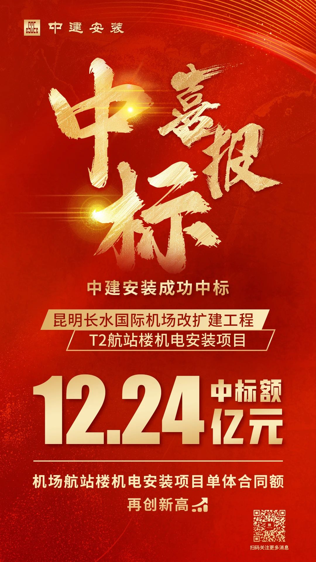 近日,中建安裝集團有限公司成功中標昆明長水國際機場改擴建工程T2航站樓機電安裝項目,中標額12.24億元,此次中標不僅進一步鞏固了中建安裝在高端機電領域的行業領先優勢,也是公司專業化、高質量發展歷程中的又一重要里程碑。
