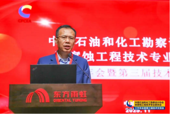 2025 年 11 月 6 日至 7 日,中國石油和化工勘察設計協會防腐蝕工程技術專業委員會 2025 年度工作年會暨第三屆技術交流會在承辦單位北京東方雨虹防腐技術有限公司(以下簡稱 “東方雨虹”)總部科技園成功舉辦。協會常務副理事長兼秘書長榮世立出席大會。來自全國各地的專委會委員、特邀委員、行業專家、院校教授及企業家代表等八十余人齊聚一堂,共話防腐蝕工程技術發展新路徑。會議由防腐蝕專委會秘書長張鈞鈞主持。
